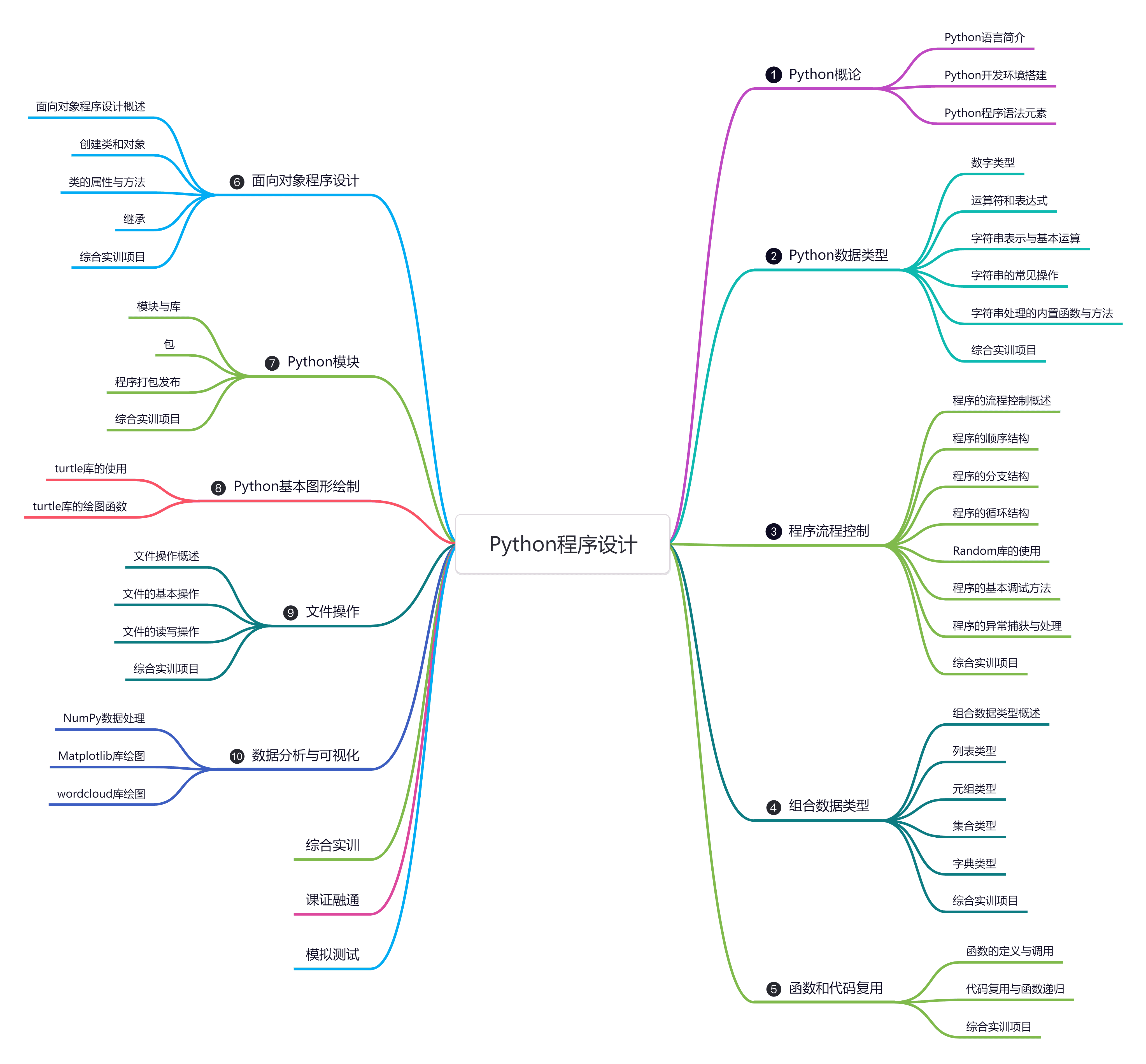《Python程序设计》是一门面向初学者的编程基础课程,旨在全面培养学生的Python语言应用能力与编程思维。课程内容从Python的基本语法入手,循序渐进地引导学生掌握变量、数据类型、运算符、控制结构等编程基础元素,为后续复杂程序的编写奠定坚实基础。